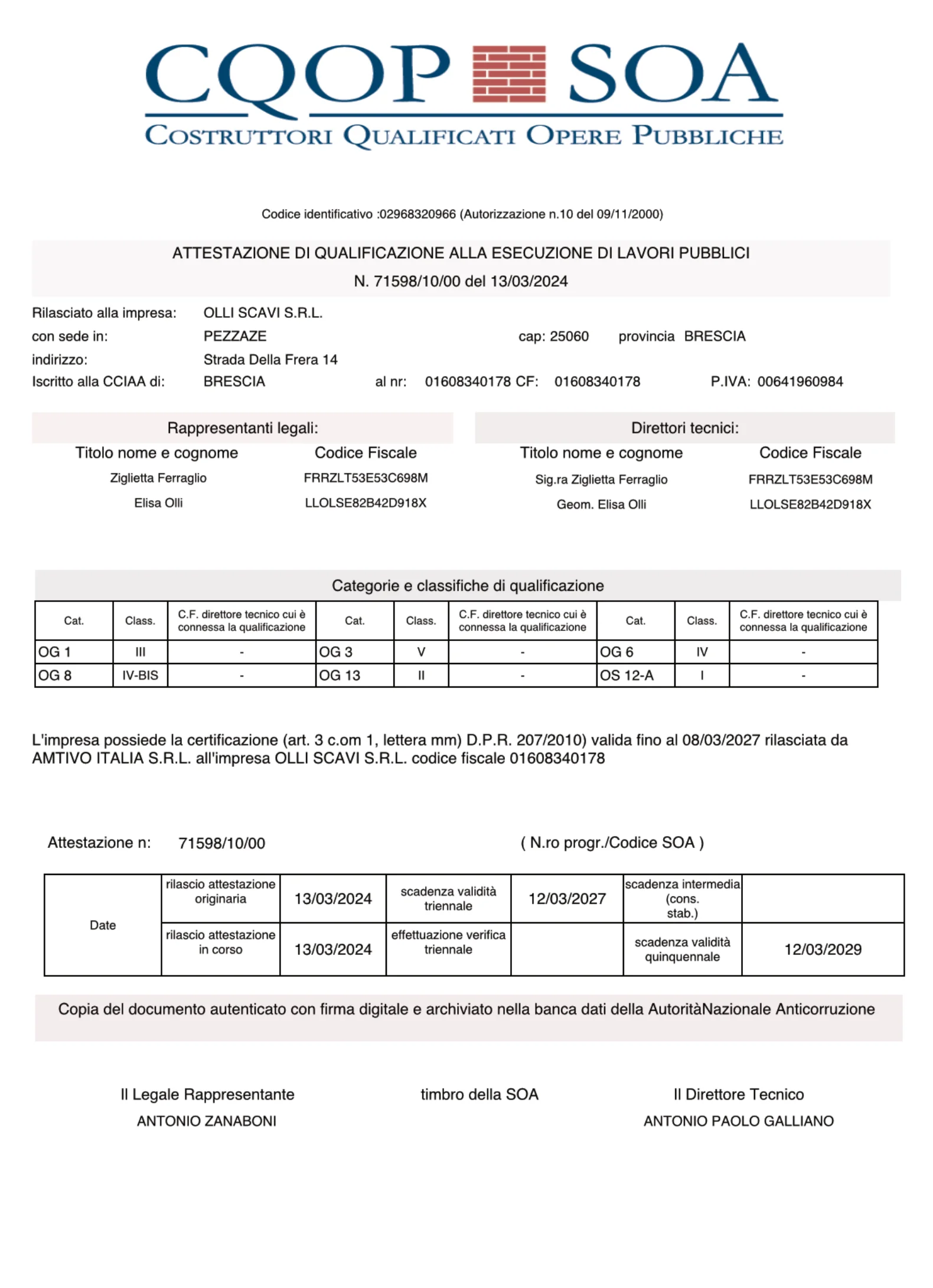 Le certificazioni di qualità ottenute confermano la professionalità di Olli Scavi, la preparazione e la cura in ogni dettaglio dei nostri interventi.